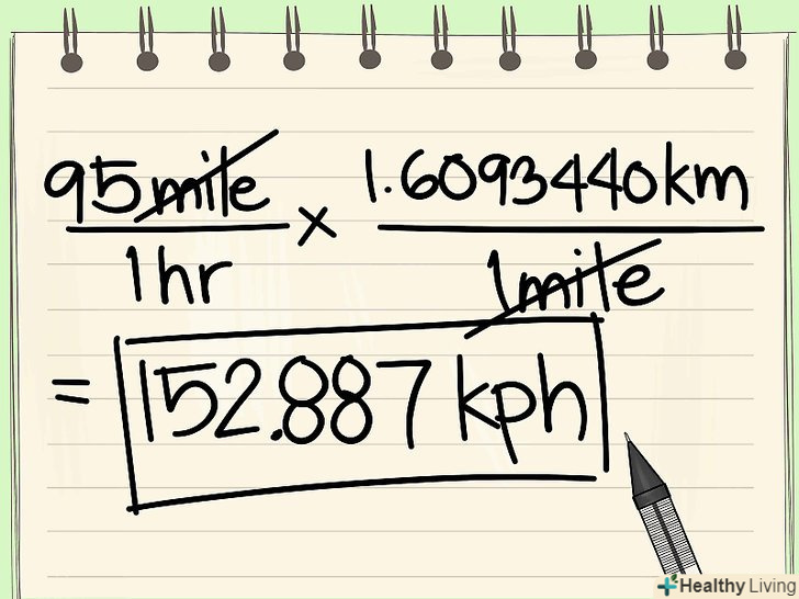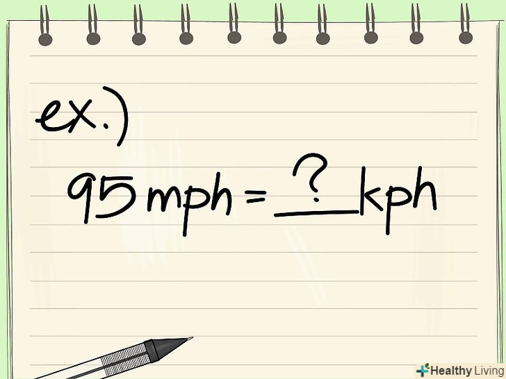 Знайдіть швидкість в км/год. ви перетворили милі в кілометри. Тепер вам знадобиться вихідне значення швидкості, виміряне в милях / год. наприклад, перетворимо швидкість 95 миль / год.