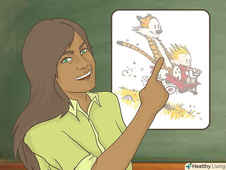Використовуйте гумор.гумор вкрай необхідний для створення позитивної атмосфери в класі. Він допоможе учням відчувати себе комфортно і невимушено. Впровадьте гумор в план уроків і використовуйте його кожен день.[8]- Наприклад, починайте кожне заняття з коміксу. Так в коміксах "Кальвін і Хоббс" є багато повчальних ситуацій, які можна обговорити з учнями.