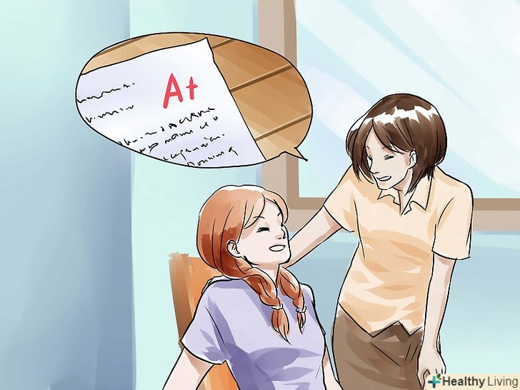 Разом поставте цілі.[1] Створіть мікс з великих і дрібних цілей, яких потрібно досягти за певну кількість часу. Наприклад, учень, можливо, не поліпшить свою оцінку з математики за місяць, проте трьох місяців буде достатньо для значного поліпшення. Невеликі цілі можуть бути розраховані на короткий період: до кінця заняття учень напише есе на 150 слів про головне джерело майбутньої дослідницької роботи.- Запишіть цілі на аркуш паперу і дозвольте учневі відстежувати їх. Так ви наділите його більшою відповідальністю за свої досягнення.