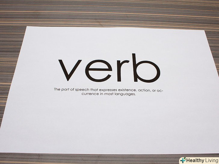 Дієслово: слово, яке показує дію або стан. Не забувайте, що ваші дії можна описати за допомогою дієслів. Також ця частина мови виражає стан буття або існування. Приклад: бігати, стрибати, сидіти, вчитися - всі ці слова позначають дії. Також існує окремий клас дієслів, який пов'язують підмет і доповнення (слово, яке по-іншому називає або описує підмет за допомогою дієслова). Дієслова-зв'язки включають всі форми дієслова "бути" (в тому випадку, коли вони не відносяться до підмета. До дієслів-зв'язкам відносяться слова" здаватися"," ставати"," з'являтися " і будь-який інший дієслово, який передає рівність між двома суб'єктивними поняттями.
