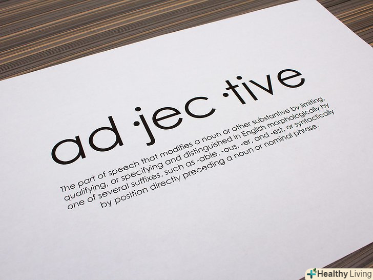 Ім'я прикметник: слово, яке служить для опису іменника. Не плутайте його з говіркою. Приклад: красивий, великий, галасливий.