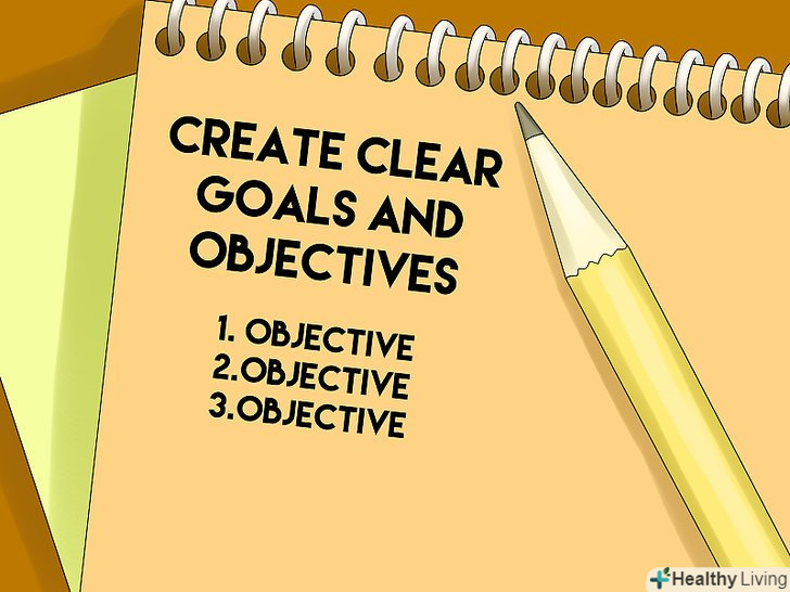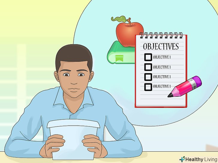 Поставте чіткі цілі і завдання (не обов'язково).цілі і завдання можуть стосуватися як всього часу роботи, так і конкретного заняття. Якщо вони охоплюють одне заняття, в них можна вказувати конкретні теми і параграфи з підручника, які слід розглянути в цей день, а також спосіб підготовки до заняття.[43]- Наявність чітких цілей і завдань допоможе упевнитися, що група зосереджена на потрібному матеріалі.[44]