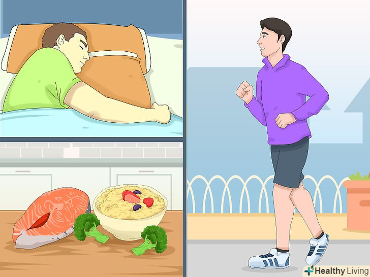 Слідкуйте за здоров'ям. Дотримуйтеся щоденного збалансованого раціону. Кожен день виконуйте зарядку. Щодня лягайте спати і вставайте в один і той же час навіть у вихідні дні. Щоночі спіть по 6-8 годин. Залишайтеся на позитивній хвилі, а якщо ви починаєте сильно втомлюватися або турбуватися, то зверніться за допомогою.[23]