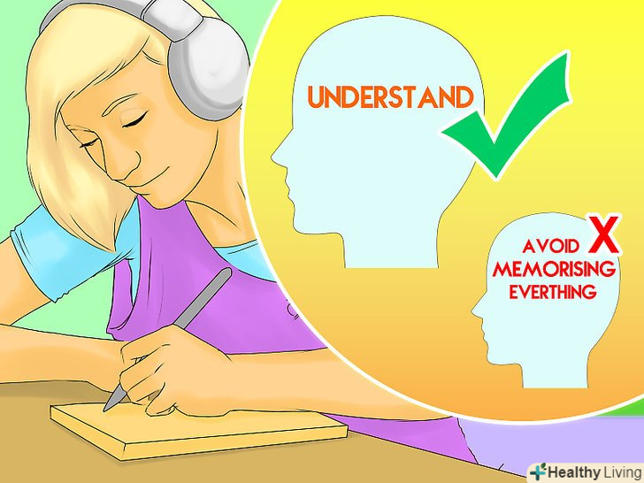 Не намагайтеся запам'ятати все.зубріння спрацює тільки в тому випадку, якщо у вас ейдетична пам'ять як у Шелдона Купера. Ви повинні знати наукові поняття, але ще важливіше розуміти їх. Легко забути те, що ви завчили, але не те, в чому ви розібралися.[25]- Якщо вам все ж потрібно зазубрити деякі відомості (наприклад, дату винаходу телефону), використовуйте такі прийоми, як Мнемоніка і повторення.[26]