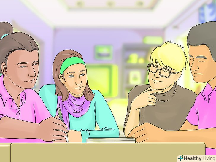 Заохочуйте один одного.навчальні групи покликані не тільки допомогти в навчанні, а й забезпечити моральну підтримку і заохочення. Привітайте один одного з добре виконаною роботою. Формулюйте відгуки як позитивні твердження. Знайдіть веселі та розважальні способи вивчення нового матеріалу на групових заняттях.[46]