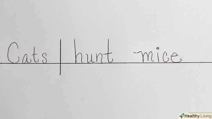 Намалюйте горизонтальну лінію з короткою вертикальною лінією в центрі.напишіть присудок праворуч від лінії, а підмет — з лівої.
