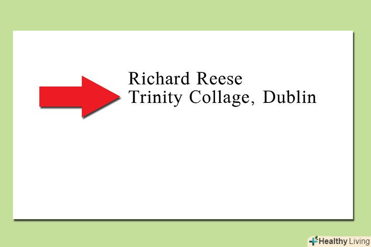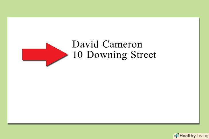 У першому рядку напишіть ім'я одержувача.це може бути як ім'я людини, так і назва організації. Вкажіть також необхідні звання. Ви можете не писати звання, якщо відправляєте лист друзям або членам сім'ї, але ви повинні вказати, якщо адресат – чиновник, військовий, доктор, професор або літня людина.