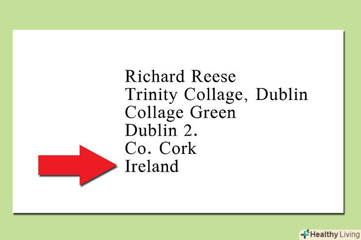 Напишіть назву країни (при необхідності).якщо ви відправляєте лист з іншої країни, то в останньому рядку необхідно вказати"Ірландія".