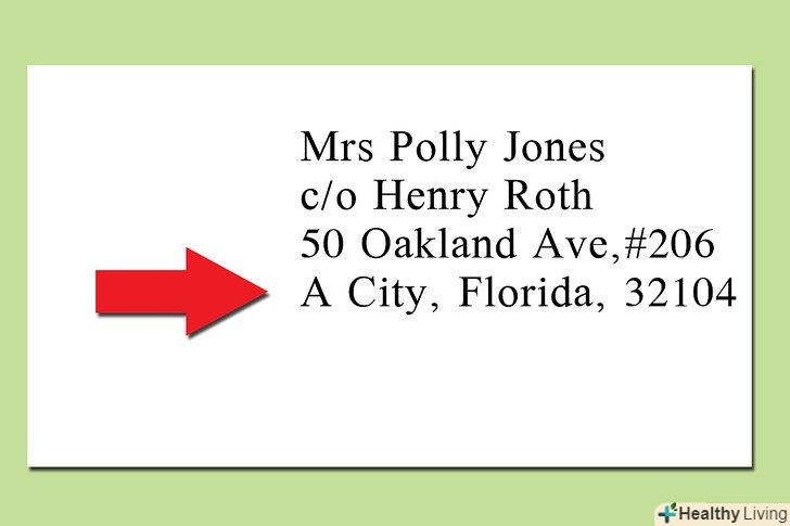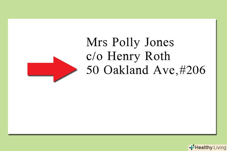 На конверті зробіть спеціальну позначку, якщо ви відправляєте лист на адресу, за якою адресат фактично не проживає, але за яким в даний момент знаходиться. під ім'ям адресата необхідно підписати"для передачі тому-то".- Напишіть "c/ o" перед ім'ям людини, яка проживає в готелі, гуртожитку і т. д.
