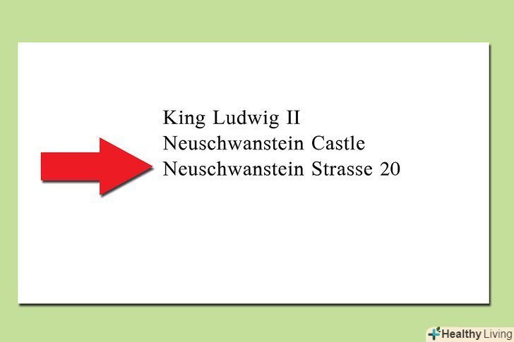 Назву та номер вулиці вкажіть у третьому рядку.наприклад, "Нойшванштайн 20".