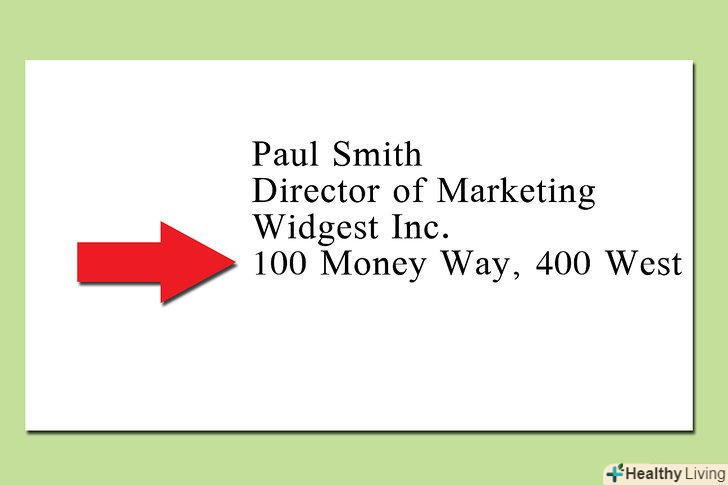 Вкажіть ім'я одержувача.одержувач може бути як окрема людина, так і організація в цілому. По можливості намагайтеся вказувати конкретне ім'я замість назви організації-ваш лист в цьому випадку точно потрапить до того, кому потрібно. Використовуйте офіційні звернення, такі як" Міс"," місіс"," Містер " або інші, які відповідають адресату.- Напишіть посаду адресата після імені (за бажанням). Наприклад, якщо ви відправляєте лист маркетинговому директору, необхідно написати "Полу Сміту, маркетинговому директору" в першому рядку.