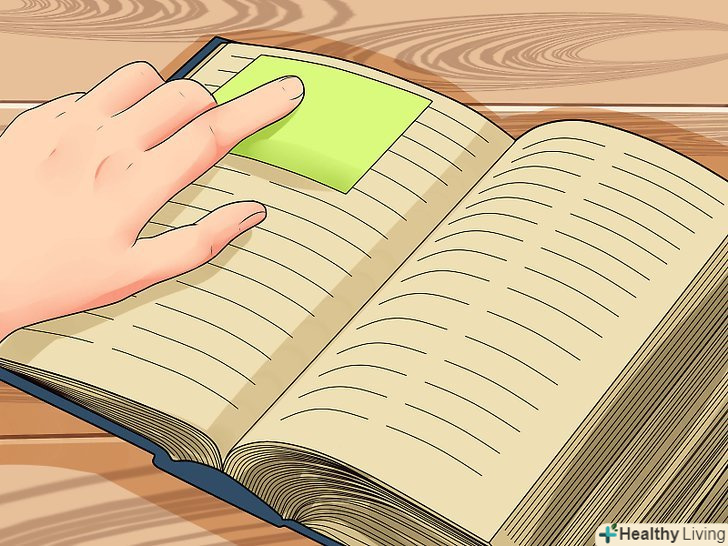 Використовуйте листочки для позначки місця в тексті.якщо ви читаєте довгу книгу і хочете відзначити певне місце в ній, то найзручніше буде приклеїти до цікавить Вас сторінці яскравий листок паперу. Якщо можливо, ви також можете відзначити цікавить Вас текст за допомогою маркера.