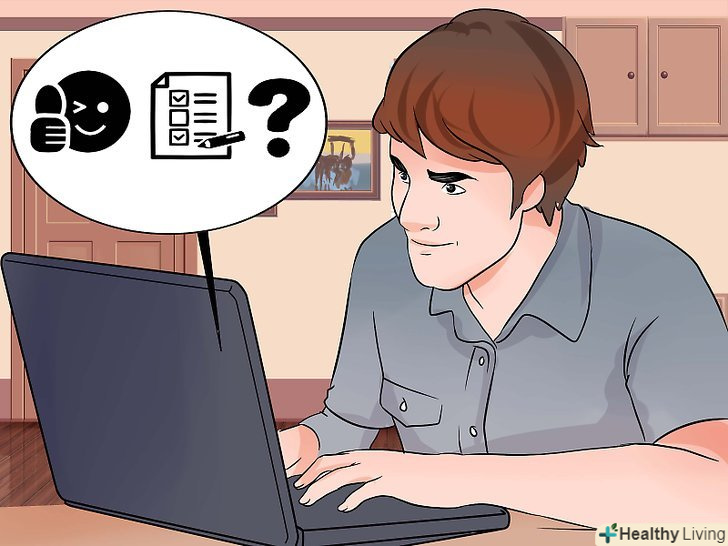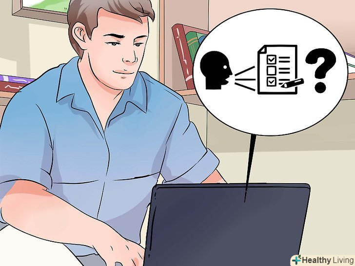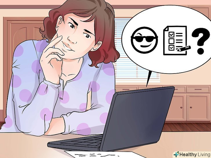 Пройдіть особистісні тести.їх можна знайти в спеціалізованій літературі і в Інтернеті. Є безліч сайтів, де можна знайти безкоштовні тести, але при цьому важливо використовувати надійне джерело.[5]- Не проходьте тести на популярних розважальних сайтах, оскільки часто люди, які їх складають, не мають спеціальної освіти в сфері психології. Є сайти, які відомі своїми тестами. Їх цікаво проходити, проте в їх основі немає наукової інформації.