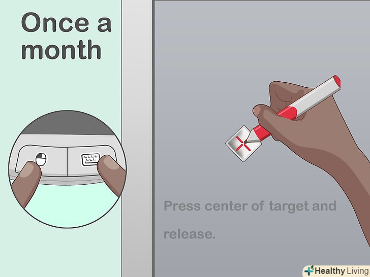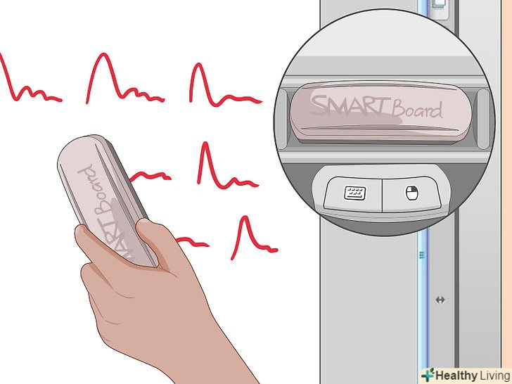 Калібруйте інтерактивну дошку раз на місяць.інтерактивні дошки можуть розбалансуватися після частого використання, особливо якщо нею користуєтеся НЕ ви одні! Інтерактивну дошку необхідно калібрувати раз на місяць або близько того, або при появі проблем з вирівнюванням і калібруванням.[9]- Кожного тижня чистіть інтерактивну дошку очищувачем для скла або безспиртовими серветками.інтерактивні дошки дуже швидко стають липкими і брудними. Чистіть їх раз на тиждень або в міру необхідності очищувачем для скла або безспиртовими серветками. Не забудьте вимкнути інтерактивну дошку перед очищенням, щоб не перемішати іконки на екрані, протерши її занадто швидко.