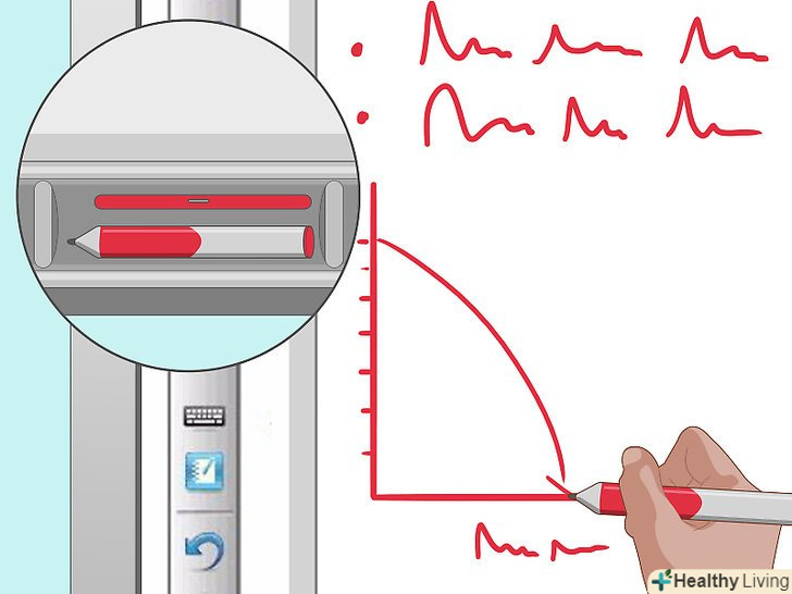 Використовуйте ластик, щоб стерти будь-які помилки.у лотку для пір'я також міститься ластик. Користуйтеся ним так само, як звичайним ластиком — просто притисніть його до тексту, який хочете стерти, і проведіть по дошці, поки він не зникне.[5]- Як варіант, обведіть гумкою велике коло навколо всього, що хочете стерти, а потім торкніться гумкою центру кола і спостерігайте, як весь текст зникне!