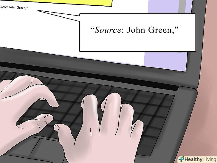 Під таблицею наберіть курсивом"джерело". Після цього додайте двокрапка. Далі введіть ім'я та прізвище автора:- "джерело: Джон Грін, " після цього поставте кому.