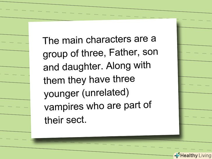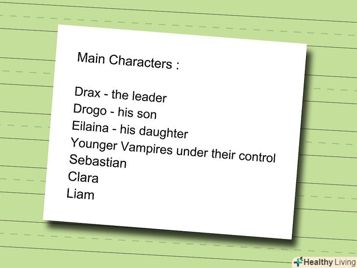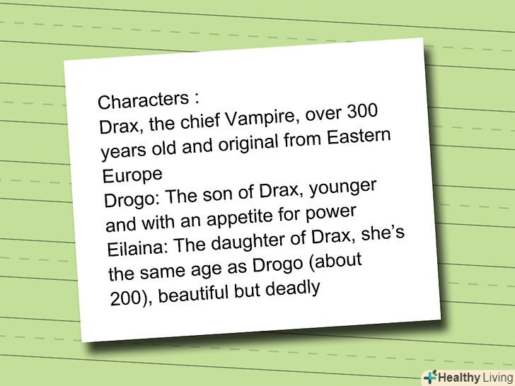 Придумайте кілька персонажів. ви збираєтеся зосередитися на одному вампірі, який знаходиться серед людей (або Ельфа, гнома, інопланетянина або когось ще)? Або ви хочете створити цілу зграю вампірів? Кожен персонаж повинен бути розроблений повністю, так що почніть зі створення декількох персонажів, поки не наберетеся досвіду в написанні книг.