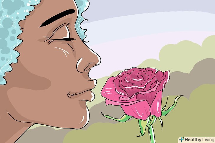 - Для опису тих запахів в природі, які не відносяться до їжі, знову поясніть, що листя і трава зелені, а вода блакитна. На пляжі можна відчути синій запах води і коричневий або білий запах піску. Поясніть, що квіти можуть бути будь-якого кольору, і часто один і той же вид квітки може мати різні кольори, але, як правило, вони не бувають зеленими, коричневими, сірими або чорними.[2]