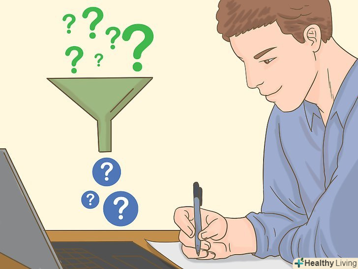 Сплануйте питання, які допоможуть вам отримати необхідну інформацію.почніть з великої кількості питань, а потім звужуйте список до тих пір, поки кожен з них не буде певним чином ставитися до вашої мети. Питання та відповіді повинні бути простими, використовуйте якомога менше слів, якщо це можливо. Можна задавати як питання, що вимагають розгорнутого відповіді, так і питання, що допускають односкладовий відповідь.