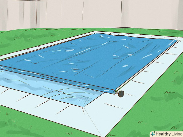 Накривайте басейн спеціальним брезентом.він допоможе значно знизити втрати води при випаровуванні і позбавить від необхідності часто наповнювати басейн. Чим більше води випаровується, тим більше води потрібно долити. У накритому басейні втрати знижуються на 30-50 %.[12]- Можна вибрати більш доступне поліетиленове покриття з бульбашками і більш довговічне покриття з вінілу.