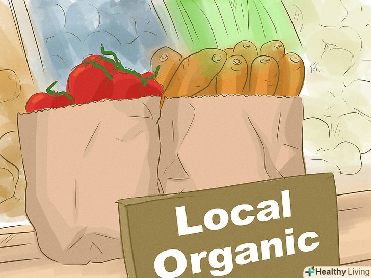 Купуйте продукти місцевого виробництва, щоб скоротити забруднення навколишнього середовища під час перевезення.транспортування продуктів харчування негативно позначається на природі. Їжу перевозять у вантажівках, морським, повітряним і залізничним транспортом, який сильно забруднює навколишнє середовище. Купуйте продукти місцевого виробництва, щоб усунути або хоча б скоротити ступінь впливу на природне середовище при транспортуванні. Також місцеві продукти завжди більш свіжі, отже, вони мають більш високу поживну цінність.[25]- Купуйте овочі та фрукти на фермерських ринках, щоб підтримувати Сільське господарство вашого регіону.