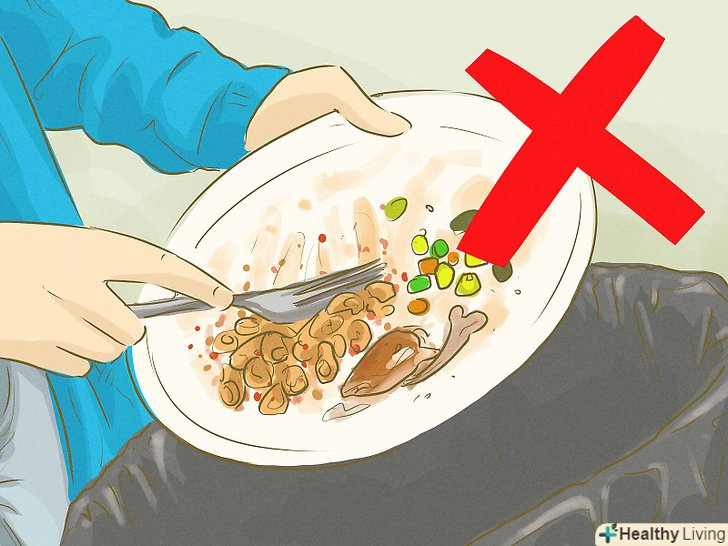Не викидайте продукти.плануйте свій раціон, щоб готувати стільки їжі, скільки вам буде потрібно. Не викидайте залишки, адже їх можна розігріти або перетворити в нове блюдо і харчуватися ще кілька днів. Якщо у вас залишилася зайва їжа після вечірки, то поділіться з сусідами і друзями.