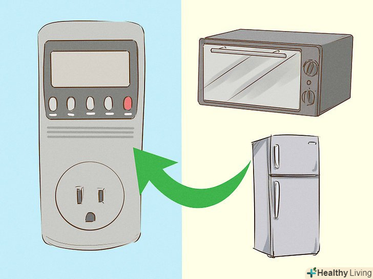 Заміряйте витрата електроенергії різних приладів за допомогою портативного електролічильника.такий пристрій можна придбати в магазині електроніки приблизно за 1200 рублів. Увімкніть прилад в розетку на портативному лічильнику, щоб дізнатися витрата. Прилад повідомить вам, скільки електроенергії споживає даний пристрій, а також можливу витрату фантомного струму.[7]- Використовуйте таку інформацію, щоб рідше використовувати певні пристрої, пам'ятати про необхідність відключати і вимикати з розетки невикористовувані прилади.