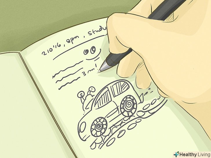 Щоденник потрібно вести регулярно.ведення щоденника дозволяє простежувати хід ваших думок і зрозуміти, які почуття охоплювали вас в той чи інший час. Так що, продовжуйте писати! Легко втратити запал після перших кількох захоплених записів, однак ведення щоденника принесе користь, якщо вам вдасться робити в ньому записи регулярно.- Багато з тих, хто веде щоденник, додають в нього записи перед сном. Це хороша практика, оскільки ввечері ви можете розслабитися і не поспішаючи викласти всі охоплюючі вас почуття і емоції.