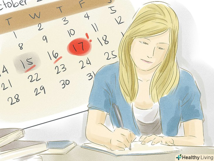 Розробіть хороший навчальний розклад і дотримуйтеся його.Подумайте, в який час ви найбільш уважні і здатні концентруватися. Для когось це може бути період відразу після школи. А інші можуть бути більш продуктивними, якщо зроблять перерву після занять і трохи розслабляться перед тим, як взятися за підручники. Незалежно від часу, який ви виберете для навчання, ви будете запам'ятовувати більше інформації, якщо будете вчитися потроху кожен день (від 30 до 60 хвилин за один раз), а не зубрити все в останню хвилину.[2]- Не забудьте включити перерви в свій навчальний розклад. Вони дають мозку можливість ввібрати те, що ви тільки що вивчили.