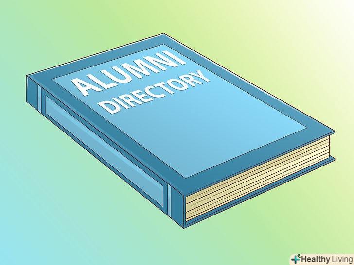 Використовуйте каталоги випускників.зверніться до своєї школи та/або університету, щоб знайти адресу або придбати копію каталогу.- У багатьох навчальних закладах також є онлайн-бази, дошки оголошень, групи в соціальних мережах і списки адрес електронної пошти. За допомогою них ви зможете зв'язатися з людьми для того, щоб знайти інформацію про людину.