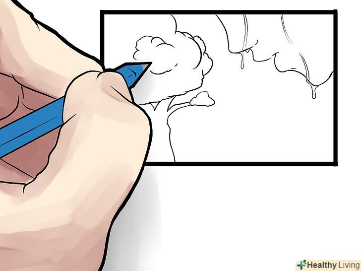 Додайте хмарки з промовою.накидайте їх там, де хотіли б розташувати. Вони не повинні закривати персонажа або займати занадто багато місця. Пам'ятайте, що іноді форма хмарки змінюється, щоб виділити особливу інтонацію голосу. Наприклад, хмарка з загостреними краями показує, що герої кричить. Скористайтеся цими прийомами.- Почитайте комікси в Інтернеті, щоб краще розібратися в формах хмар.