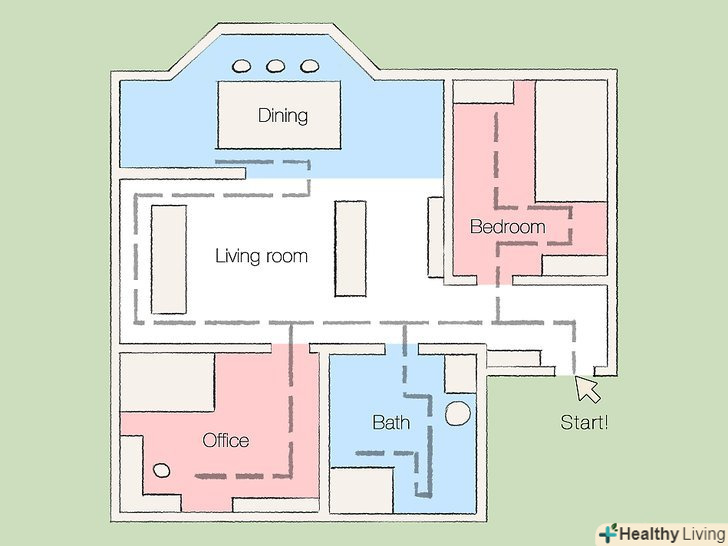 Пройдіться по палацу, щоб намітити маршрут.Вирішіть, як ви будете пересуватися по палацу в розумі, а не просто уявляйте конкретне місце. Наприклад, замість того щоб просто візуалізувати свій будинок, уявіть, як ви гуляєте по ньому. Ви входите через парадні двері? По якому коридору ви йдете? В які кімнати ви заходите? Якщо вам потрібно запам'ятати речі в певному порядку, слідуйте по конкретному маршруту через свій палац, як в реальному світі, так і в розумі.[2]- Якщо ви почнете тренуватися проходити цей маршрут зараз, вам буде простіше запам'ятовувати інформацію в подальшому.
