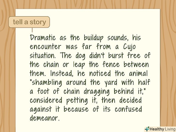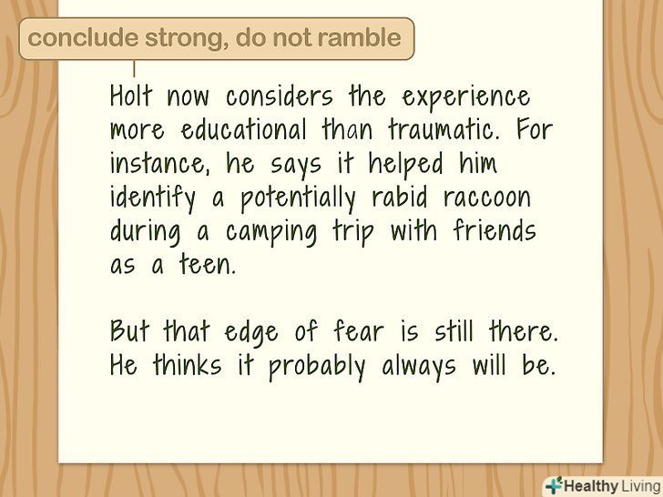 Додайте історію, щоб захопити читача.трохи пожвавите свою статтю, включивши в неї цікаві факти або зворушливу історію. Якщо ви просто викладете свою думку або видасте список інструкцій, швидше за все, це буде досить нудно. Якщо ви пишете статтю про нові закони для малого бізнесу, можна взяти інтерв'ю у місцевого підприємця і написати про те, як ці зміни можуть вплинути на його справу.[7]- У статті про новорічні страви можна написати про певні продукти, що нагадують вам про новий рік, який Ви святкували під час навчання за кордоном.