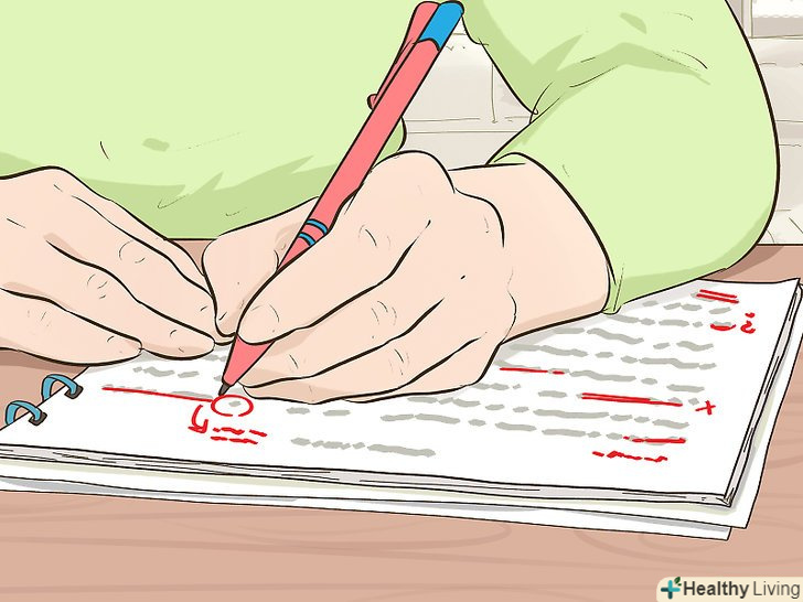 Прочитайте статтю кілька разів, щоб знайти недоліки.незважаючи на користь технологій не покладайтеся на них повністю. Під час редагування уважно прочитайте свою роботу, щоб пошукати способи вдосконалити її. Можливо, ви помітите, що потрібно зробити більш плавні переходи між темами або що ви забули послатися на джерело. Програмне забезпечення не зможе допомогти вам з виявленням цих проблем.[12]- При кожному перегляді статті звертайте увагу на різні аспекти. Наприклад, в перший раз можна зосередитися на виявленні стилістичних помилок. При наступному читанні переконайтеся в належному Тоні листи.