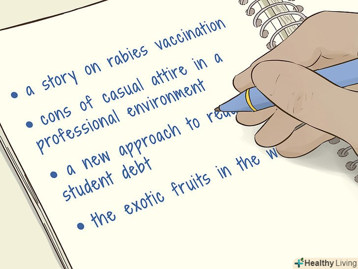 - Якщо ви пишете статтю для шкільної газети, запитайте редактора або керівника, що ви повинні висвітлити (наприклад, розповісти про ремонт бібліотеки або зробити замітку про нових учнів).