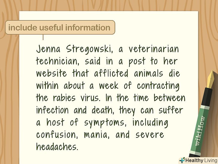 Обов'язково вказуйте слушну інформацію, щоб читач виніс для себе щось нове.цікаві історії-це здорово, однак вам також потрібно включити в статтю корисну інформацію. Перегляньте свої дослідницькі нотатки та виберіть найбільш актуальні дані. Наприклад, якщо ви пишете новорічному застілля, не забудьте додати поради про те, що подавати, скільки часу це займе і як приготувати кожну страву. При цьому не ліпіть все підряд. Проявіть розсудливість і зробіть правильний вибір. Необов'язково давати рецепти п'яти видів пирога. І обов'язково цитуйте джерела![8]- Недостатньо просто сказати читачам, як сильно ви любите влаштовувати вегетаріанську вечерю на Новий Рік. Наведіть конкретні приклади, чим можна здивувати гостей.
