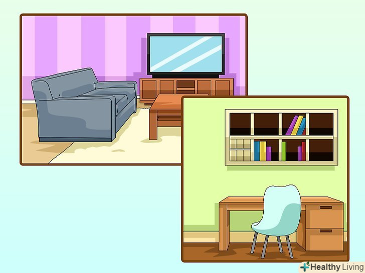Займайтеся в різних місцях.нові дослідження показують, що люди засвоюють більше інформації, коли займаються в різних місцях.[13] ви зможете краще зосередитися, якщо будете змінювати місця навчання, тому що так ваше оточення змушує вас бути більш уважним. Наприклад, коли ви відчуєте, що втрачаєте азарт до навчання, перейдіть в іншу кімнату в своєму будинку.- Намагайтеся відвідувати різні місця з різною атмосферою. Наприклад, в різних кімнатах стіни різного кольору і/або відрізняється освітлення.