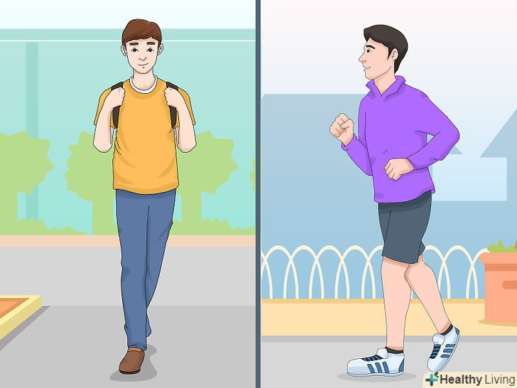 - Знайдіть спосіб займатися фізичними вправами, не змінюючи свій стиль життя. Наприклад, пройдіть кілька зупинок пішки по дорозі в університет або ходите по сходах і не користуйтеся ліфтом.[5]