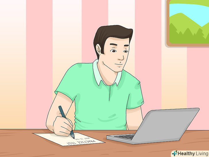 - Запишіться на програму підготовки до іспитів в Інтернеті.є багато сайтів, деякі з них безкоштовні, інші платні, де ви можете зареєструватися і займатися підготовкою до потрібного іспиту. Наприклад, для ЄДІ, є сайти з підготовки до ЄДІ з відеоматеріалами, текстовими уроками, практичними завданнями, які схожі на справжній іспит[1], і іграми, які допомагають вам вчитися і не дають відволікатися.
