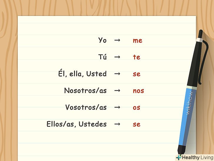 Навчіться відмінювати займенник"se". щоб відмінювати рефлексивний дієслово, насамперед слід навчитися відмінювати його, в залежності від займенника-суб'єкта. До кожної форми займенника-суб'єкта є своя форма "se", які будуть використовуватися для будь-якого часу. Виглядає все так:[2]- Yo: me