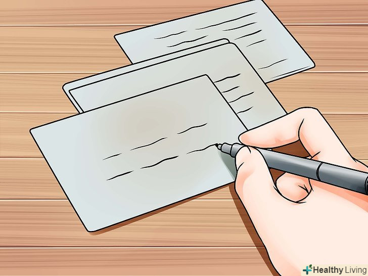 Зробіть словникові картки.єдиний спосіб вивчити мову-запам'ятовувати нові слова. Робіть картки з арабським словом на одній стороні і його російським перекладом на інший. Ви можете використовувати їх для самоперевірки. До того ж, картки не такі громіздкі, як підручники, і ви можете носити їх з собою і повторювати слова де завгодно, як тільки з'явиться вільний момент.- Можливо, вам легше буде вчити слова, об'єднуючи їх в групи за значенням. На відміну від англійської, в арабській мові використовуються коріння, за якими можна передбачити значення або походження слова. Наприклад, в англійській і в російській слова "комп'ютер", "клавіатура", "Інтернет" пов'язані за значенням, але не за звучанням. В арабському ж пов'язані слова мають зв'язок і на слух.