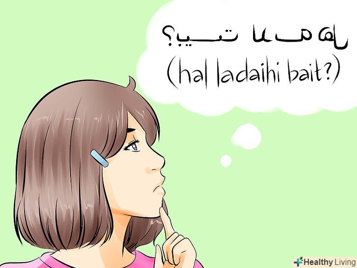 Навчіться задавати питання. щоб перетворити речення в питальне, в арабському можна просто почати його зі слова قل (Хель) (на листі не забудьте, що пропозиція починається праворуч!).- Наприклад, قل لديه بيت؟(Хель ладаіхі Баіт? ("у нього є Будинок?"–- це питальна форма пропозиції لديه بيت (ладаіхі Баіт) ("у нього є Будинок").