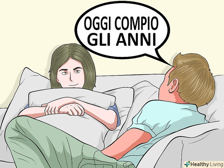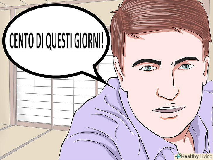 Спробуйте " cento di questi giorni!".[3] це ще одне італійське вираз, яке ви можете використовувати, щоб привітати людину, при цьому конкретно не згадуючи про день народження. Фактично ви бажаєте хлопцю або дівчині 100 років з днями народженнями або ж просто довгого життя.- Cento означає "сто",di вказує на родовий відмінок (так само як "of" в англійській мові),questi перекладається як "цих", аgiorni - "днів". Дослівно це звучить як " Сто таких днів!".