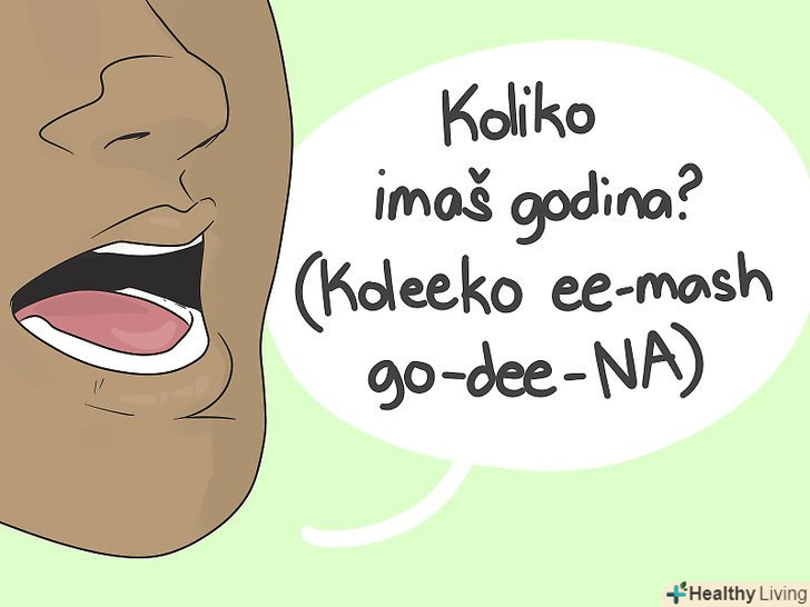 Скільки тобі років? -Koliko imaš godina? (стосується коліко імаш година)