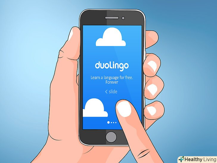 Спробуйте Duolingo.Duolingo-це безкоштовний інструмент для вивчення іноземних мов. Існує онлайн-версія програми, а також версії для Android і iOS. Замість того щоб зосередитися на запам'ятовуванні, воно допомагає навчитися читати і говорити на новій мові, дозволяючи бачити слова і фрази, прослуховувати їх і перекладати. Завершуючи уроки, користувачі отримують очки - завдяки цьому вивчати мову з Duolingo дуже весело.