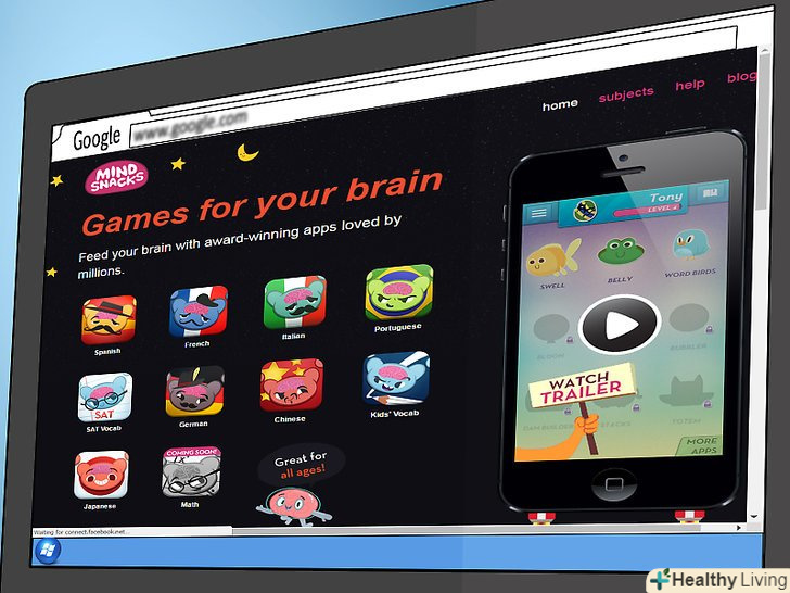 Спробуйте Livemocha. Livemocha-це веб-продукт, який пропонує онлайн-уроки та підручники, а також можливість поспілкуватися з носієм мови. І хоча більша частина матеріалів на Livemocha абсолютно безкоштовна, ви завжди можете заплатити за додаткові послуги, включаючи індивідуальні програми навчання та більш просунуті Мовні курси.- Спробуйте MindSnacks. Виберіть будь-який вподобаний урок, щоб вивчити мову через різні ігри.