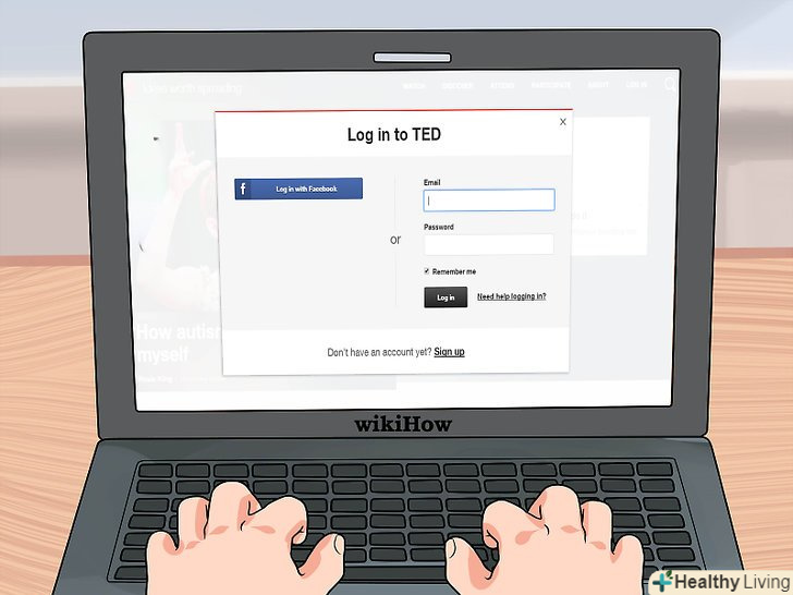 Створіть свій TED-аккаунт.зареєструвати свій аккаунт на TED-це просто. Зайдіть на сайт www.ted.com і натисніть значок " Log in "(увійти) в правому верхньому куті. Ви побачите запрошення введення: вам запропонують або увійти в систему, або Зареєструватися. Виберіть " Sign up "(зареєструватися). [2] вам потрібно буде ввести:- Ваше ім'я та прізвище;