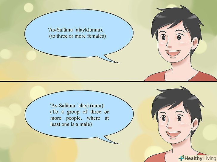Не забувайте про відмінність у вітанні чоловіка або жінки.через граматичні правила арабської мови це стає трохи скрутним. Є різні вимови привітань: для однієї жінки, для одного чоловіка, для групи чоловіків, двох жінок, двох чоловіків і т. д.