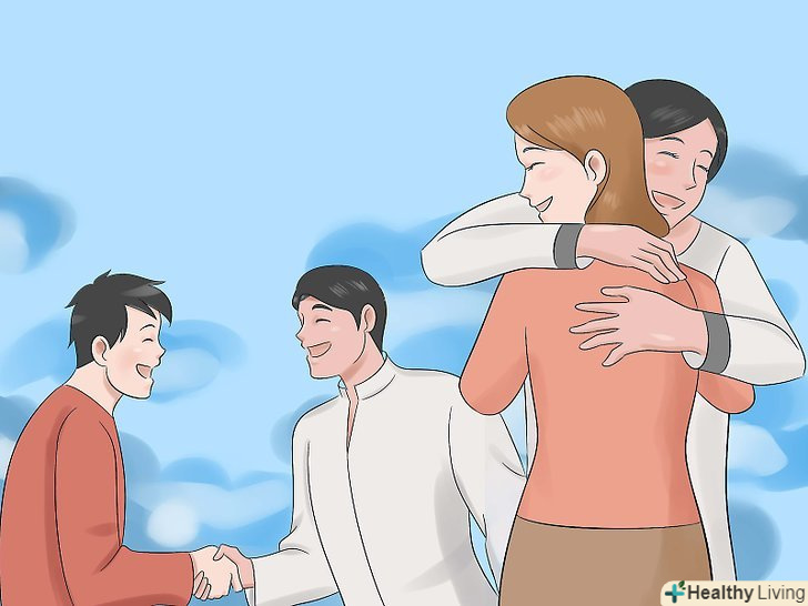 Вітайте в залежності від рівня ваших відносин.якщо ви хороші знайомі, просто скажіть слова вітання. Якщо ви друзі, потисніть руки. Якщо ви хороші друзі, тоді можете обійнятися і потиснути руки. Якщо ви родичі і не знаєте, як вітати один одного, можете обійнятися і тричі поцілувати один одного в щоки.