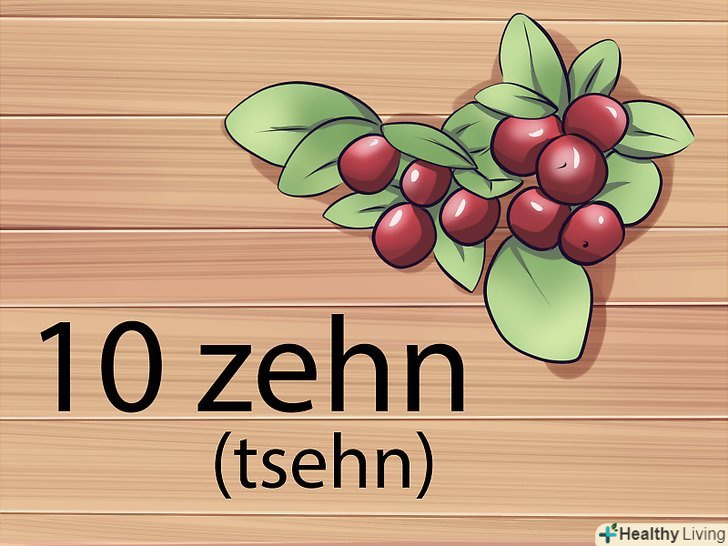 Завершіть рахунок, сказавши" zehn " (десять). Не забудьте німецьке правило, що буква "z" на початку речення вимовляється як звук "ts" (ц). Так "zehn" - це" tsehn " (цін).- Як тільки ви оволодієте рахунком від 1 до 10, можливо, вам також знадобиться знати, як сказати нуль по-німецьки. Нуль-це "null", вимовляється як" nool " (нуль).